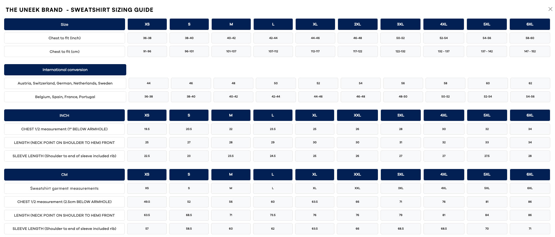 XS - 6XL